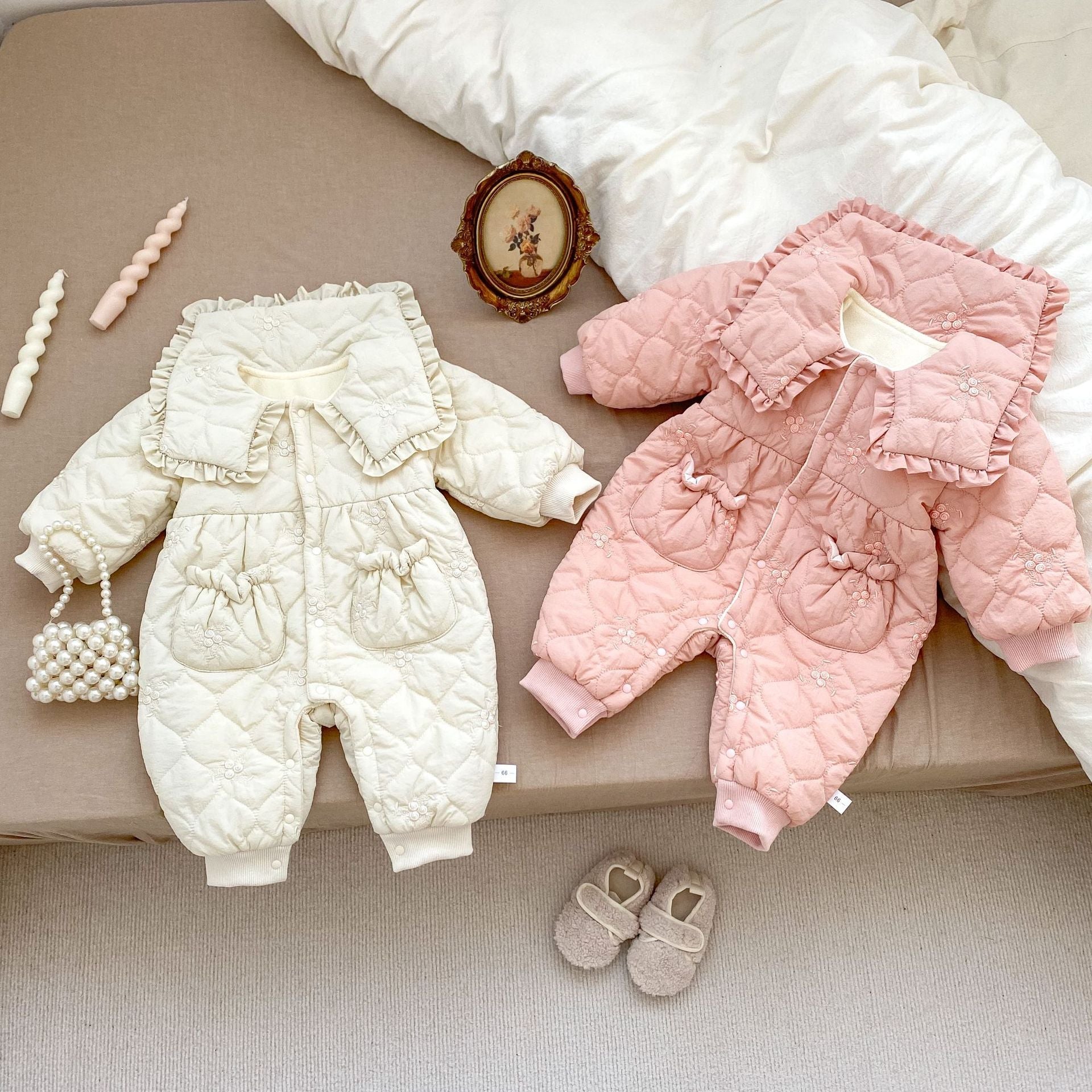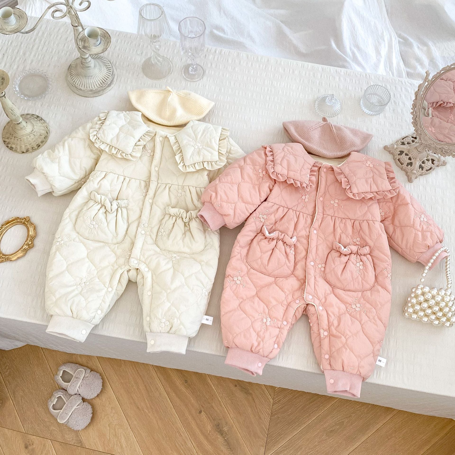 Arrival Baby Girls Floral Pattern Single Breasted Thick Romper
