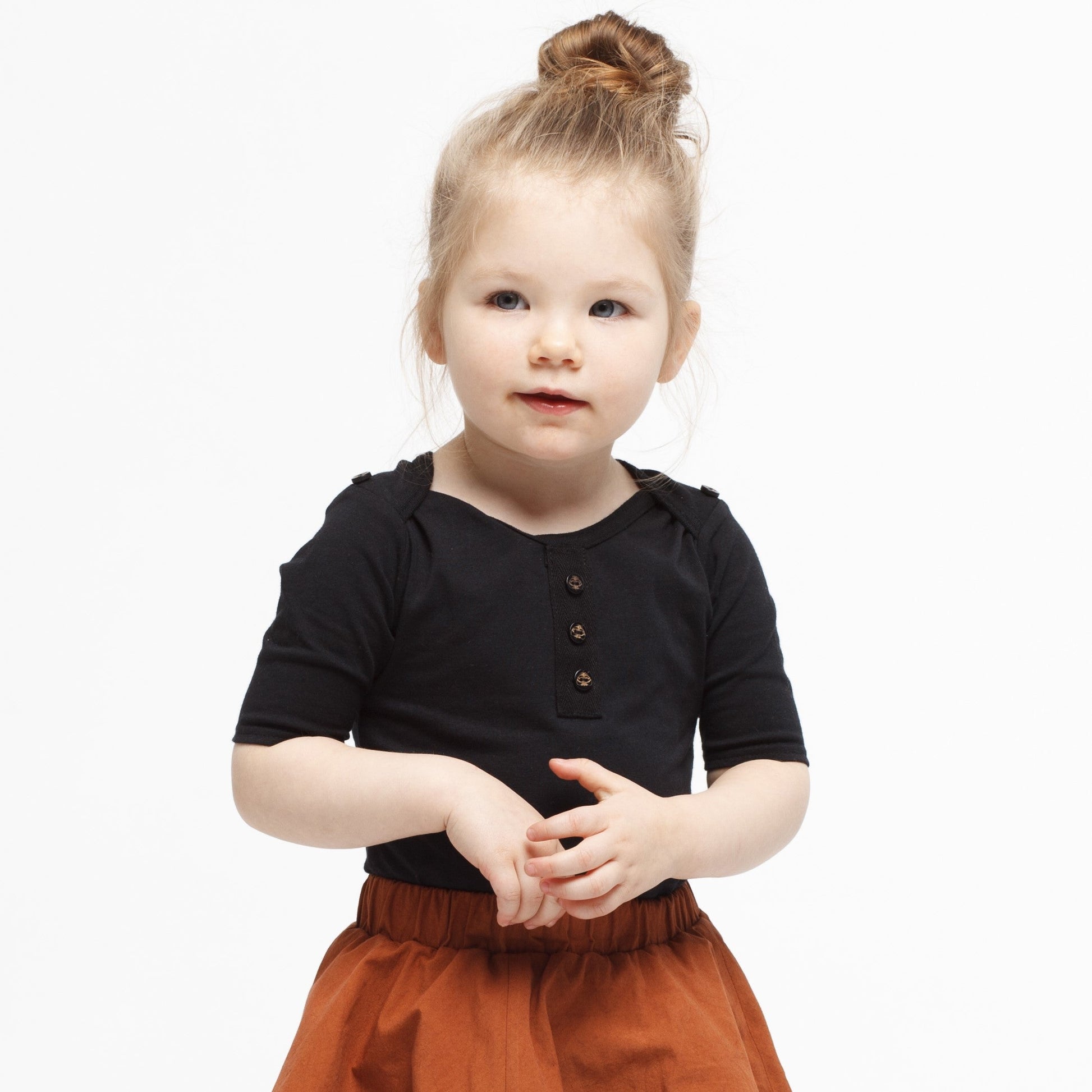 Infantium Victoria's black baby onesie is the epitome of refined, sustainable children’s fashion. Perfect for families who value ethical luxury and avant-garde aesthetics, this timeless piece offers unparalleled style and comfort. With limited availability, it’s a must-have for your little one’s wardrobe.