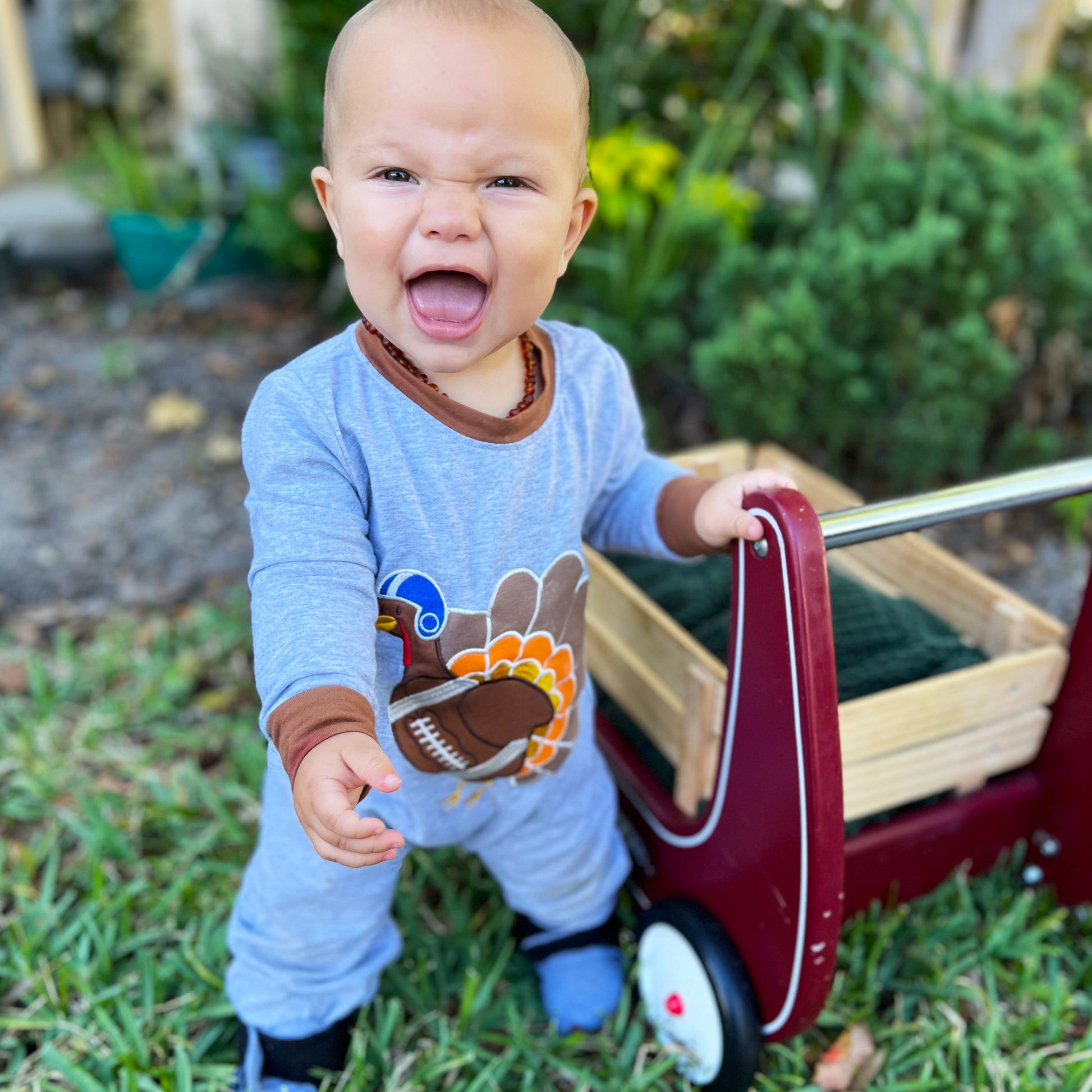 Boys Long Sleeve Football Thanksgiving Turkey Baby Toddler Romper