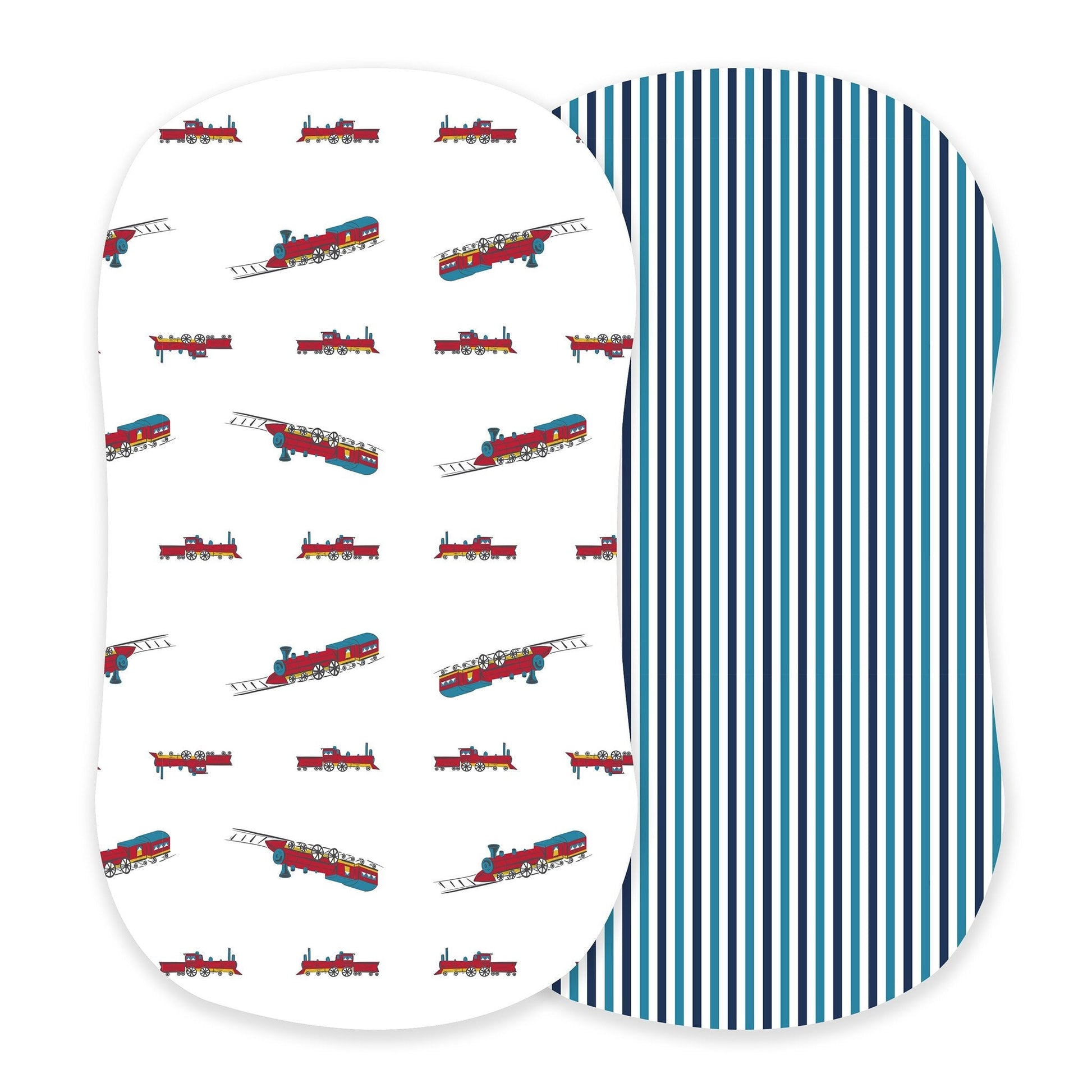 Vintage Steam Trains and Blue and White Stripe Bamboo Changing Pad Cover/Bassinet Sheets